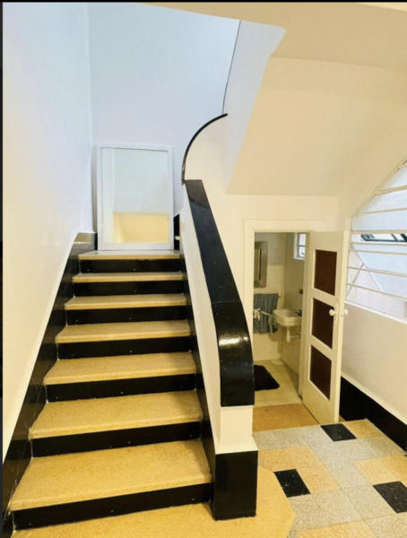 Un patio el cual tiene unas escaleras que nos lleva al área del roof.